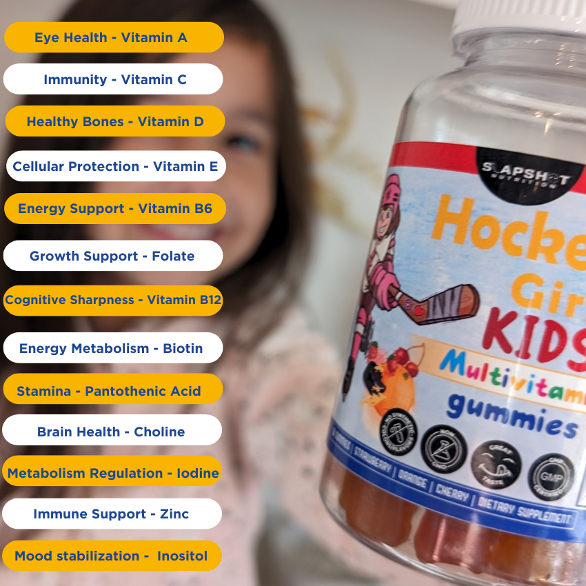 Perfect choice for young developing hockey girls. Loaded with essential vitamins and minerals for normal energy, healthy immune system, and overall health.